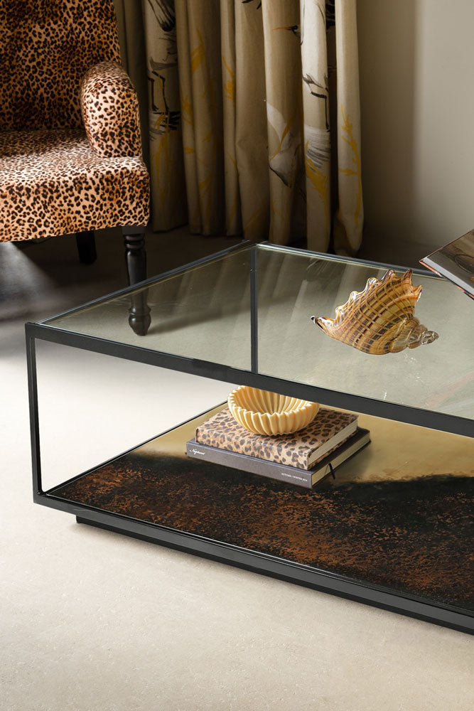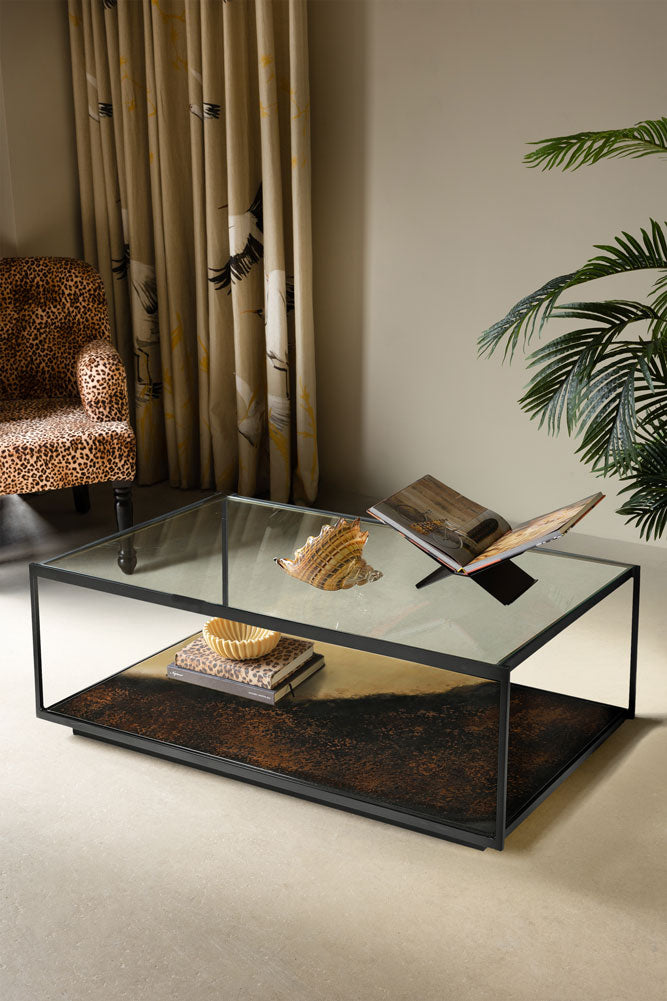 C'est le genre de pièce qui vous fait vous arrêter au milieu d'une phrase et dire : « Où as-tu trouvé ça ?! » Avec son élégant cadre en métal noir et son design à deux niveaux, cette table basse rectangulaire allie à la perfection luxe moderne et style intemporel. Le niveau supérieur est doté d'une surface en verre transparent et impeccable, encadrée de métal noir chic, idéale pour votre café, vos livres ou cette bougie fantaisie que vous n'arrivez pas à allumer. Mais la véritable magie se trouve au niveau inférieur de cette table basse moderne : une superbe surface dorée et noire polie, à l'effet nappe d'huile, qui semble avoir été littéralement forgée par l'univers. Riche, pleine d'ambiance, elle regorge d'éléments naturels et organiques qui transforment chaque angle en œuvre d'art. Plus qu'une simple table basse, c'est un investissement conçu pour durer des années. Votre salon mérite un peu de luxe, et cette magnifique table basse en verre est le point de départ idéal.
