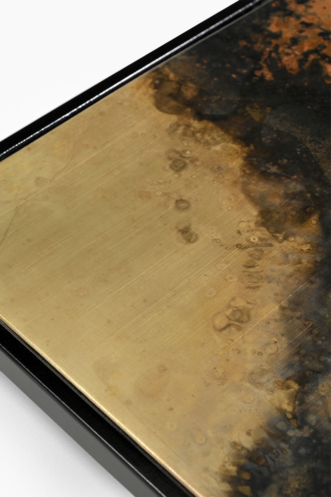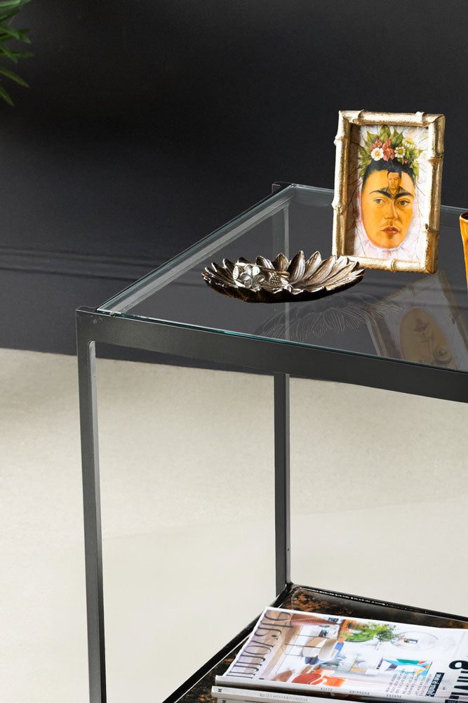 La magnifique table d'appoint en métal bruni et verre est la preuve que les grandes choses se cachent dans de petits objets luxueux. Avec son élégant cadre en métal noir et son design chic à deux niveaux, cette table en verre respire l'élégance moderne tout en apportant la touche finale parfaite. Le niveau supérieur est doté d'une surface en verre transparent encadrée d'un métal noir audacieux, idéale pour votre tasse à café préférée ou cette lampe fantaisie que vous rêvez de mettre en valeur. Mais la véritable magie ? Son plateau inférieur époustouflant. Orné d'un riche motif noir bruni et or, il scintille d'un éclat magnifique, presque surnaturel. C'est le genre de pièce qui sublime n'importe quel coin, qu'elle soit utilisée comme table d'appoint dans un salon ou comme table de chevet pour une touche de luxe. Audacieuse et raffinée, cette table d'appoint n'est pas un simple meuble, c'est une œuvre d'art.