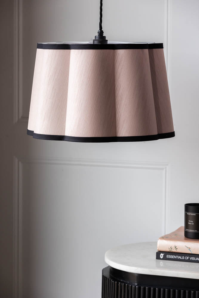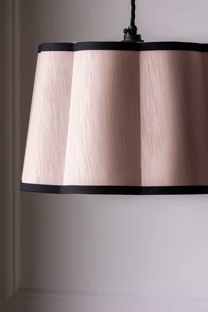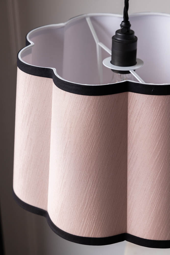 Oubliez les abat-jours ennuyeux avec le magnifique abat-jour festonné rose poudré. Idéal pour une lampe de table ou une suspension, son design astucieux apporte une touche de style festonné, du plafond de votre chambre à la table d'appoint de votre salon. Inspirées des courbes élégantes des coquillages naturels, les formes festonnées sont devenues une tendance intemporelle en décoration intérieure, idéale pour l'éclairage. Grâce à ces courbes, de magnifiques ombres lumineuses apparaissent sur le mur ou le plafond lorsque le soleil se couche et que vos lumières s'allument. Apportant une touche de couleur glamour à votre intérieur, la délicate palette rose poudré de l'abat-jour s'harmonise avec la subtile texture du tissu inspirée de la soie. Avec son liseré noir audacieux pour le contraste, cet abat-jour luxueux et abordable promet de transformer n'importe quel coin de votre maison avec un style avant-gardiste.