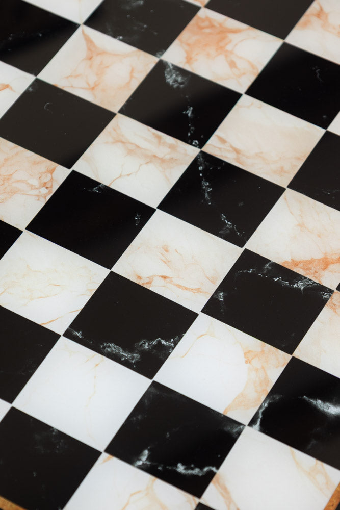 Cette table d'appoint carrée incarne la fantaisie d'Alice au pays des merveilles, avec une généreuse touche de vintage monochrome, et nous l'adorons. Avec son cadre bronze effet rustique et ses pieds joliment courbés, cette petite table est le genre de pièce que l'on pourrait trouver par hasard lors d'un goûter secret dans un jardin ou d'une brocante particulièrement prisée. Surmontée d'un damier noir et blanc brillant, elle allie à la perfection fantaisie et élégance. En effet, elle est ludique : son plateau est un véritable échiquier sur lequel on peut jouer aux échecs ! On sait ! Idéale pour mettre en valeur votre décoration d'intérieur originale, vos accessoires originaux et vos prouesses aux jeux de société. Placez-la près de votre fauteuil préféré ou dans un coin qui mériterait une touche de magie.