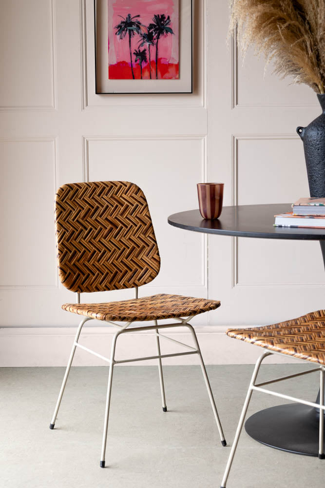 Prêt à donner à votre salle à manger une touche rustique et bohème ? Découvrez la chaise de salle à manger en rotin tressé, le plus bel équilibre entre charme décontracté et style naturel. Avec son assise en rotin naturel magnifiquement tressé, cette chaise de salle à manger arbore ces textures naturelles et simples qui nous fascinent. Les riches détails bruns tissés sur ce meuble en rotin apportent profondeur et chaleur, lui conférant une ambiance chic et côtière. Les pieds, dans un mélange saisissant de tons crème et pierre, créent un contraste parfait tout en conservant un ensemble doux, neutre et accueillant. C'est la chaise de cuisine idéale pour les tables à manger, les petits-déjeuners ensoleillés, ou même comme pièce maîtresse dans un coin cosy. Associez-la à une jolie nappe et à des fleurs fraîches, et vous aurez un résultat impeccable.