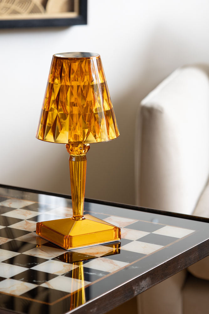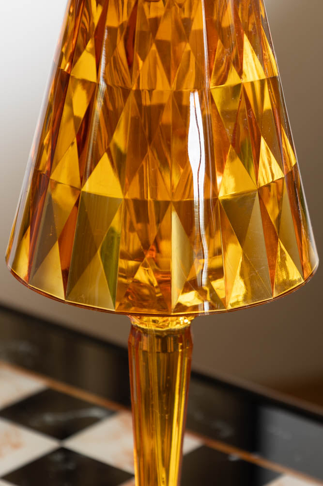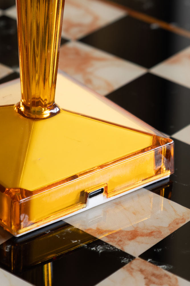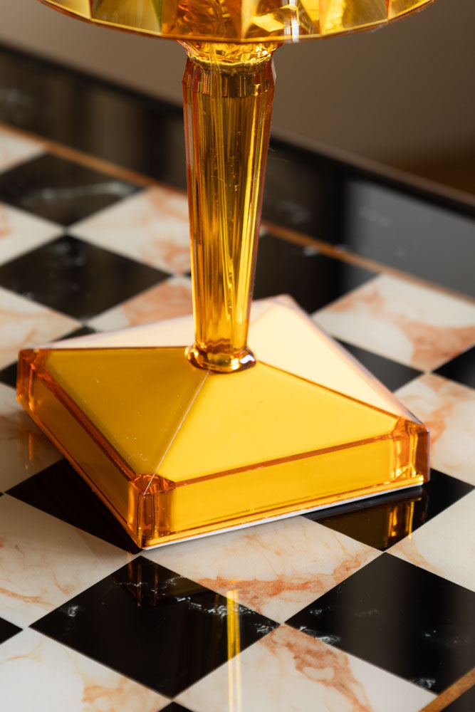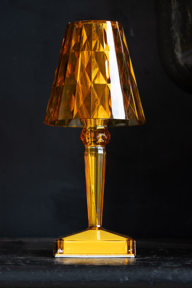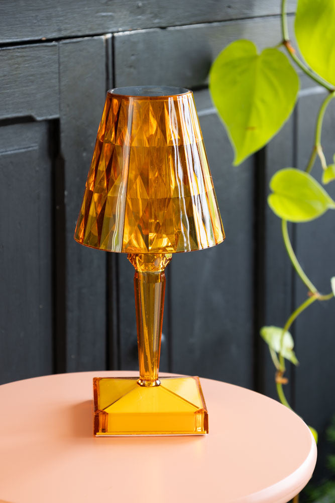 Prêt à ajouter une touche d'éclat à vos accessoires de maison uniques ? Découvrez la lampe de table rechargeable Jewelled Orange à intensité variable : la plus jolie petite lampe de table pour n'importe quelle pièce. Fabriquée en plastique robuste, cette petite lampe de table est absolument magnifique. Sa couleur orange intense est parfaite : chaude, dorée et juste ce qu'il faut de rétro cool. Et dès que vous l'allumez, la magie opère. Son abat-jour est orné de petits creux qui, sous la lumière, créent un effet de bijou, créant de jolis motifs scintillants qui s'harmoniseront parfaitement avec vos objets déco originaux. Posez-la sur votre table de chevet, parmi votre bureau et vos lampes de table, ou sur le buffet d'un canapé et laissez-la opérer sa magie douillette.