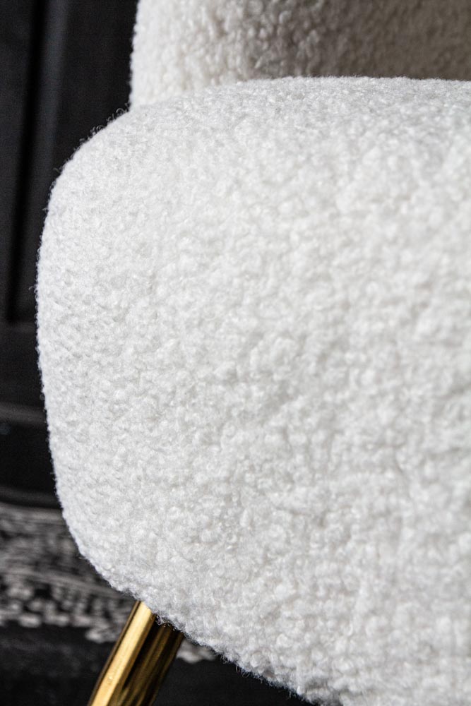 Ce fauteuil blanc est idéal pour se blottir et lire votre livre préféré. Nous vous garantissons que vous ne voudrez plus vous en séparer ! Ses élégants pieds dorés créent une allure sophistiquée, qui contraste avec le confort décontracté de ce fauteuil moelleux. Véritable pièce maîtresse de votre chambre, ce fauteuil Teddy blanc neige créera une ambiance féérique et hivernale dans votre intérieur. C'est la pièce idéale pour accueillir l'hiver.